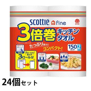 送料無料¥7,980Yahoo!ショッピングキッチンペーパー ペーパータオル 3倍巻き 150カット 2ロール 24個セット キッチンタオル スコッティ ファイン ハンドペーパー まとめ買い 料理 ふきん クレシア