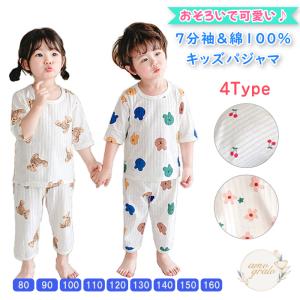 送料無料¥980Yahoo!ショッピングパジャマ ベビー キッズ ルームウェア 上下セット 綿100 ベビーパジャマ 子供パジャマ 7分丈パジャマ 薄手パジャマ 子供 男の子 女の子 お揃いパジャマ