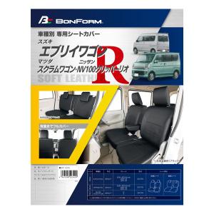 ¥11,550Yahoo!ショッピングスズキ DA17W エブリィワゴン 専用 シートカバー H27.2-R6.2 軽自動車 1台分セット ソフトレザーR 合成皮革 ブラック 黒 ステッチ M4-47 ボンフォーム 4497-13BK