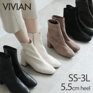 送料別¥4,480楽天市場【27日9:59まで全品20%OFFクーポン】【5.5cmヒール】25年秋冬新色 Vivian ブーツ レディース ショート ストレッチ スクエアトゥ チャンキーヒール ブラック 黒 通勤 オフィス SS 3L ソックスブーツ V6270AW