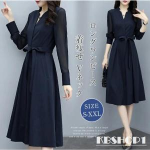 送料無料¥3,731Yahoo!ショッピングワンピース レディース 40代 50代 きれいめ 春 秋 フォーマル 無地 Vネック 長袖 ロング丈 Aライン