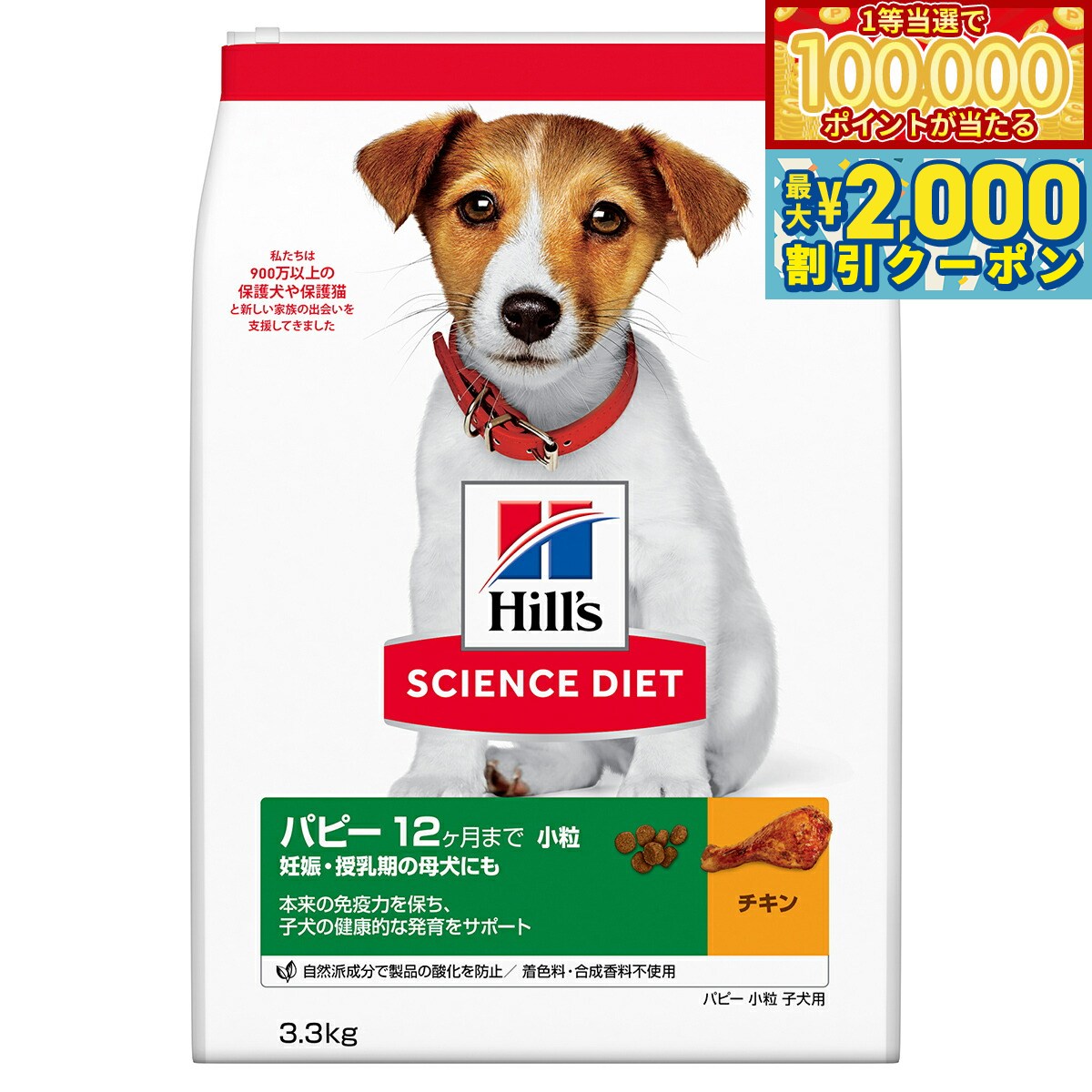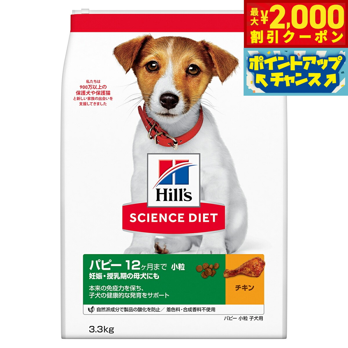 送料無料¥5,546楽天市場【最大2000円OFFクーポン!&店内ポイント最大51倍!本日限定!】サイエンス ダイエット パピー 小粒 子犬用 12ヶ月まで チキン 3.3kg ヒルズ ドッグフード ドライフード 総合栄養食 着色料 香料不使用
