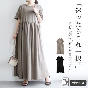 送料無料¥4,999Yahoo!ショッピングワンピース 半袖 夏 春 綿 黒 ロング マキシ コットン 体型カバー ワイド ゆったり 無地 カットソー レディース きれいめ カジュアル おしゃれ