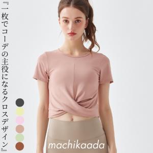 送料無料¥1,650Yahoo!ショッピングヨガウェア ピラティスウェア トップス Tシャツ ヨガ 半袖 レディース おしゃれ かわいい クロスデザイン ホットヨガ クロップド丈 クロスデザインT