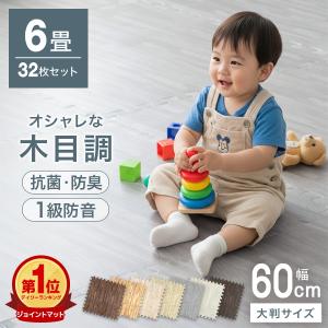 送料無料¥6,580Yahoo!ショッピングジョイントマット 大判 6畳 厚手 60cm 32枚 木目調 プレイマット ベビーマット フロアマット 防音 騒音 吸収 厚さ10mm