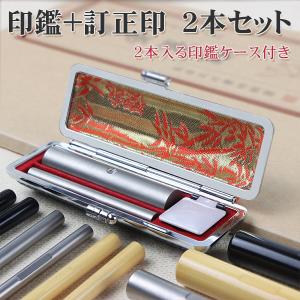 送料無料¥1,500Yahoo!ショッピング認印+訂正印 はんこ・ 個人印鑑 ・印鑑セット 小判型6×5mm/丸型6mm アタリ・目印付き 印材3種選べる【認印+訂正印 柘・黒水牛・チタン ケース付き】