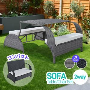 送料無料¥26,980Yahoo!ショッピングガーデン テーブル セット ガーデンソファ 2way ラタン調 ガーデンチェアー テーブル 家具 樹脂 ホテル カフェ 屋外 高級