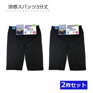 送料無料¥1,150Yahoo!ショッピングさらさら スパッツ 3分丈 2枚セット 黒無地 ひんやりレギンス 股上深め アンダーパンツ 薄手 伸縮ストレッチパンツ 涼感 インナースパッツ スカート下