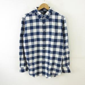 ¥980Yahoo!ショッピングユニクロ UNIQLO フランネル チェックシャツ 長袖 紺 白 XL *T404 メンズ