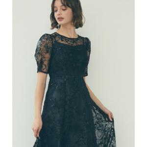 ¥22,000Yahoo!ショッピングドレス ビオラフラワーモチーフスパンコール刺繍袖付きパーティードレス 結婚式 お呼ばれ ドレス 20代 30代 40代