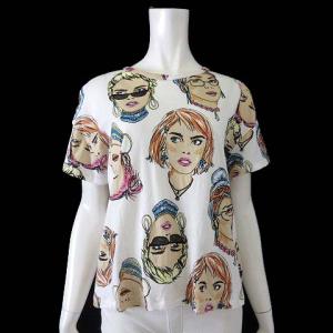 ¥1,250Yahoo!ショッピングザラ ZARA Tシャツ カットソー レディ フェイス プリント 総柄 半袖 S オフ白 マルチカラー レディース