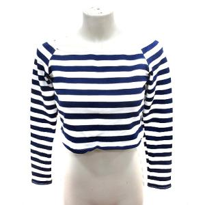 ¥2,800Yahoo!ショッピングザラ ZARA Tシャツ カットソー Uネック 長袖 クロップド丈 ボーダー L 紺 ネイビー 白 ホワイト /RT レディース